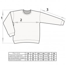 Размерный ряд: 128, 134, 140, 146, 152, 158. Ткань: петельчатый футер. Состав: 95% хлопок, 5% лайкра..